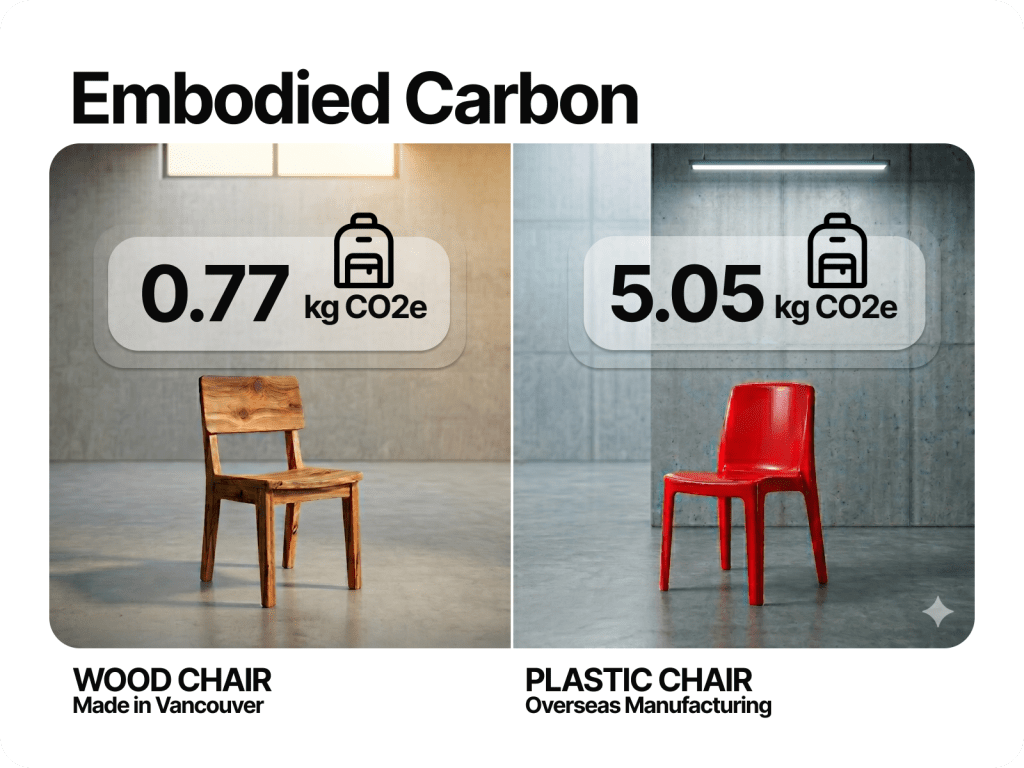 - Backpack Weight: 5.05 kg CO2 (Heavy footprint, roughly 7x the wood chair)